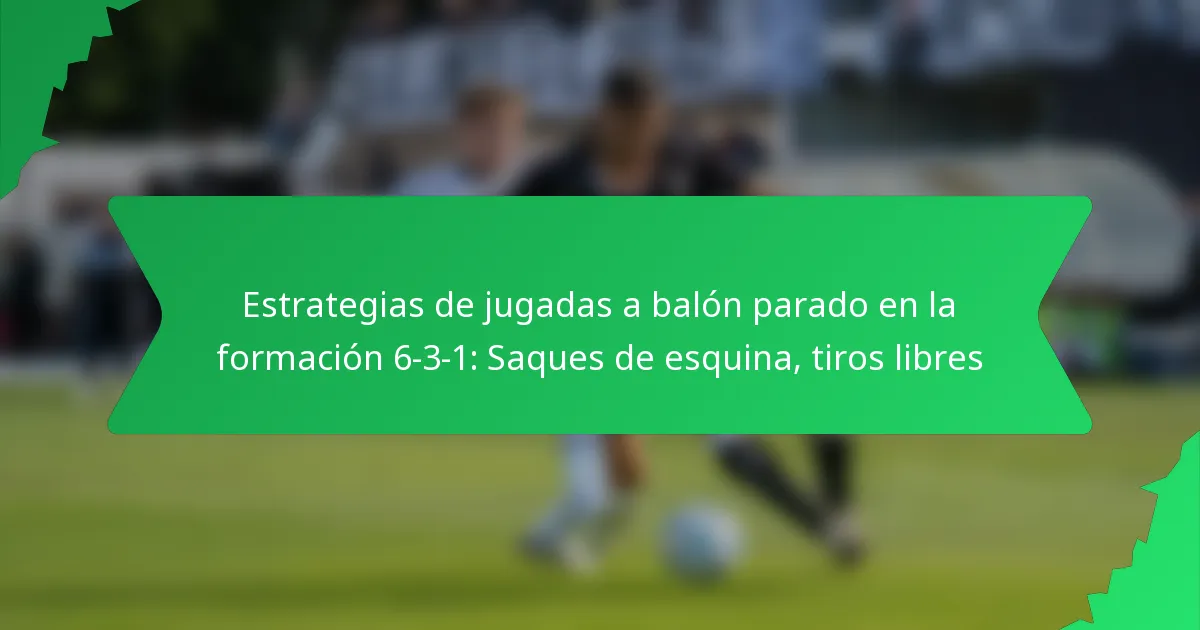 La formación 6-3-1 es un esquema táctico en el fútbol que prioriza la fortaleza defensiva mientras ofrece oportunidades para ataques estratégicos. En lo que respecta a las estrategias de jugadas a balón parado, como los córners y tiros libres, esta formación requiere una meticulosa colocación de los jugadores y comunicación para capitalizar las oportunidades de…